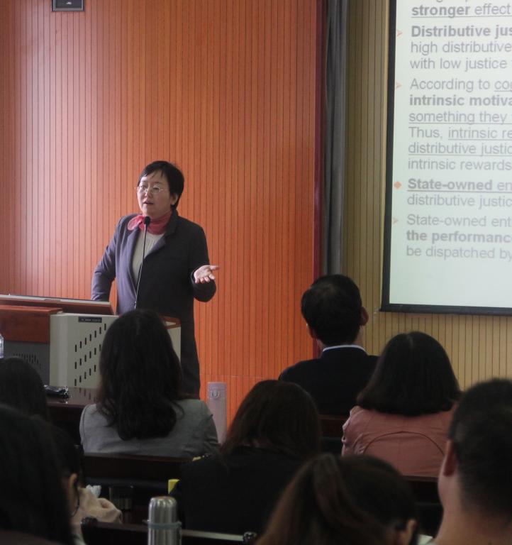 JIN XI Michelle LI教授针对内部奖励机制和外部奖励机制对中国国有企业和私有企业的影响作了报告。报告中涉及了分配是否公正,人才流动等对国有企业和私有企业的影响。