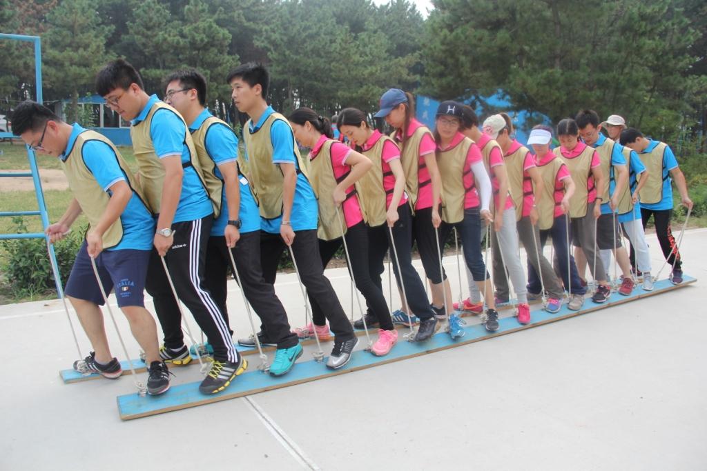拓展从破冰和团队文化建设开始,全部学员分成狼牙、烈焰、飞跃、星火燎原四支队伍,互相竞争合作,学员们积极挑战自我,挖掘自身潜力,同时注重团队合作,勇于承担责任,重重困难,顺利地完成了 “极速60秒”、“有轨电车”、“达芬奇密码”、 “团队战鼓”、“逃生墙”等一系列拓展挑战项目。