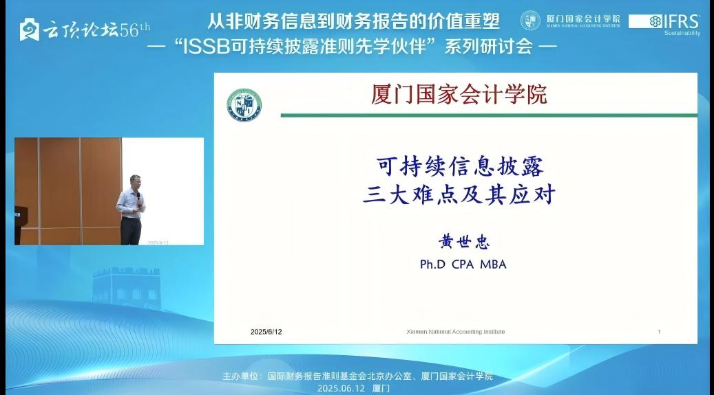 教授,黄世忠教授就“可持续信息披露的三大难点及其应对”这一主题展开了详细的演讲。