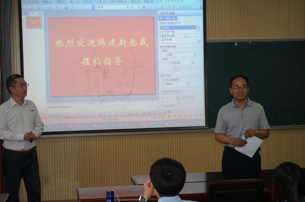 对韩建新总裁的到来表示了热烈欢迎。之后,李勋来院长隆重介绍了韩建新总裁的杰出业绩。